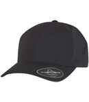 92% polyester/8% elastane. 6 panel. Structured front panel. Laser-cut perforations on side and back panels. Pre-curved peak. Black underpeak, white has white underpeak. Inner three layer sweatband with moisture wicking and stain block technology. Snapback size adjuster. Authentic visor sticker.